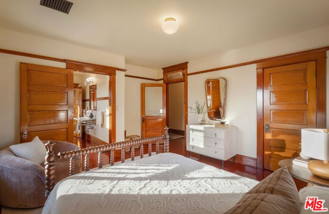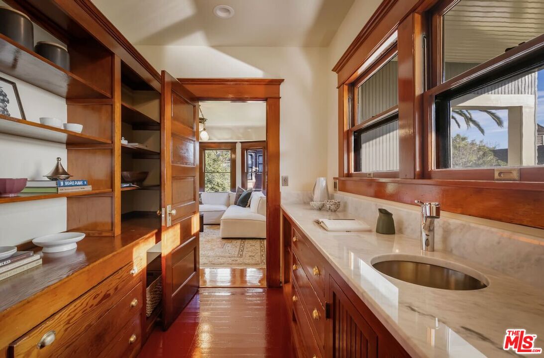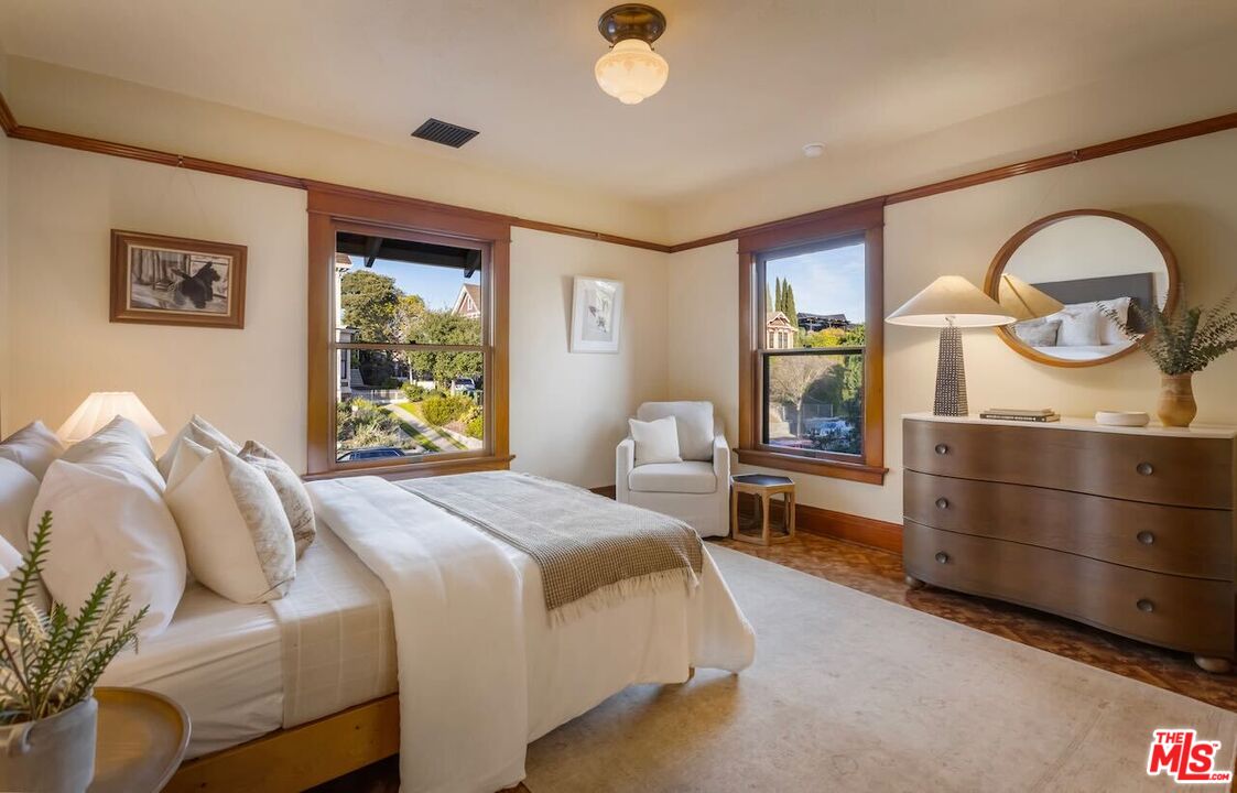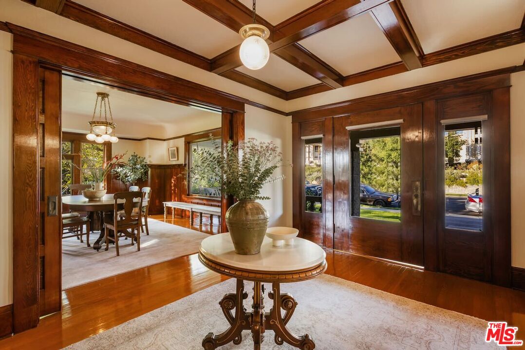 Having just completed a nearly 2-year, $1M+ restoration, The Thomas House is preserved, repaired, refinished, and modernized with all the amenities for today's discerning buyer. Built in 1907 by a wealthy plumber, The Thomas House is one of only two early transitional Craftsman homes on the block. Subdued but stately, with simpler lines, an elegant front porch, and spacious rooms, The Thomas House provides a contrast to its ornate Victorian neighbors. Situated on an oversized lot, this tranquil but solid residence has been meticulously restored, preserving its original ornamental woodwork, pocket doors, tiled decorative fireplaces, hardware, windows, and hardwood floors. All of the bedrooms are on the second floor. The primary suite has an adjoining sitting room, walk-in closet, and en-suite bath with a claw-foot tub and separate shower. System upgrades include a new roof, a zoned HVAC system, modern appliances, and plumbing, electrical, and foundation upgrades. Each sunlit room has captivating views: from the front, the famous Thriller and Charmed Houses, and from the rear, sweeping views of the Downtown skyline. Enjoy the sunset from one of the two back porches or in the large and serene back yard. Let your imagination and creativity soar in the enormous attic and full basement. The property is located in the 1300 Block of Carroll Avenue National Register Historic District in the Angelino Heights HPOZ, which has the highest concentration of Victorian homes in all of Los Angeles. This is your opportunity to become the next steward of one of Los Angeles' cherished historic gems.
